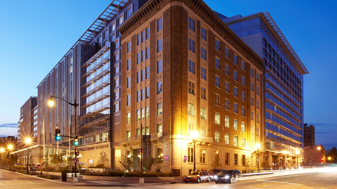 Connected to the Walter E. Washington Convention Center via underground concourse, the Marriott Marquis is the city’s social hub, overlooking the City Center & Penn Quarter neighborhoods. A luxury hotel that features a grand lobby with an atrium skylight, five retail and restaurant outlets on the ground floor, a 24-hour fitness center and an outdoor terrace that offers views of the city center.